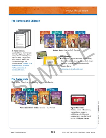 All Rights Reserved w3542 www.christourlife.comGrade 1 %u2022 Unit 1 %u2022 Chapter 1Christ Our Life%u00ae AT-HOME EDITION Grade 1 UNIT 1Chapter 1Jesus%u2019 LoveTell your child that Jesus loves everyone. Say: Because we are Jesus%u2019 friends, we want to be like him and love others. Discuss ways we bring his love to others. (by being loving, helping others, caring about our friends, being respectful)Invite your child to name some people who love him or her. Ask: How do you know that these people love you? (They are kind and show that they want the best for me; they take care of me; they make me feel safe.)Have your child complete the Someone I Love activity. Ask your child to describe how he or she can be loving to the person in the drawing.Jesus Shows His LoveDisplay a crucifix or show a picture of one. Say: This is a crucifix. It is a cross with the image of Jesus on it. Jesus died on the Cross for us because he loves us so much. [Pause.] Whenever we look at a cross or a crucifix, we can remember that Jesus died for us, rose from the dead, and is with us now. Read aloud the text on page 6. Call your child%u2019s attention to the Word to Know feature. Read aloud the definition for Sign of the Cross. Make the Sign of the Cross on your child%u2019s forehead, and say a short blessing, %u201cYou are a child of God. God loves you, and so do I.%u201dLead your child in prayer using the A Moment with Jesus feature. Pray the Sign of the Cross to conclude the prayer.The Sign of the CrossRead aloud the sentences at the top of the page. Say: When we pray the Sign of the Cross, we trace a cross on ourselves. Have your child raise his or her right hand and refer to the pictures to make the five gestures without the words. Then repeat the gestures, adding the words. Say: When we pray the Sign of the Cross, we bless ourselves by asking God to bless us. Discuss times you can pray the Sign of the Cross. (first thing in the morning and last thing at night; at mealtime; when we enter a church; anytime) If you choose, scan the QR code on page 7 and watch the video together.Chapter Review Help your child complete the Chapter 1 Review. Start with We Remember. Ask each question and invite your child to respond. Say: Look at the We Respond section. Let%u2019s pray this together: %u201cI love you, Jesus.%u201d Have your child repeat the prayer. Review the Word to Know in this chapter by locating the word and its definition in the Glossary. Consider bookmarking the first page of the Glossary so it will be easy to access the next time. Page 5Page 6Page 7Page 8 All Rights Reserved w3542 www.christourlife.comChrist Our Life%u00ae AT-HOME EDITION Grade 1 UNIT 1Chapter 1Grade 1 %u2022 Unit 1 %u2022 Chapter 1Then look through the book together. Say: In Unit 1, we will learn what God is like and how we can talk and listen to God. Invite your child to turn to page 1. Read aloud the unit title, God Is Our Good Father.Discuss the pictures on the page. Point out the picture at top left and ask your child to describe what he or she sees (children praying before a meal). Then talk about the top right illustration (the outside of a church) and the bottom illustration (people worshiping God inside a church). Explain to your child that he or she will learn about God and about some holy things we see in church. Spend some time on the bottom image, asking your child to point to different people and objects (crucifix, altar, priest, deacon, cantor singing, church members going to Holy Communion).Have your child identify the Scripture passage (at the bottom of page 1). Then explain that the words are from our holy book, the Bible. Show the Bible. Next, read aloud the Scripture passage.If you choose, scan the QR code on the page and watch the video together.Chapter 1: Jesus Is Our FriendPoint out the picture at the top of the page. Ask your child to describe the photo. (children smiling, friends, etc.) Ask: How can you tell that these children are friends? (They are smiling and laughing; they are close to one another; they are hugging.) How do you know that someone is your friend? (Friends like to be with us; they show their love by doing kind things for us.) Share a story about you and one of your friends.God Gives Us Friends Point out the picture at the bottom of the page. Ask your child how we know that Jesus wanted the children to be his friends. (He is smiling at the children; he wanted to be with them; he is blessing them.) Say: The children are hugging Jesus, which shows that they love him. Jesus is our friend. He wants us to be his friend.Read aloud page 3. God%u2019s Son, Jesus Read aloud the page and have your child point out the words Jesus and Christ. Explain that Christ is a title given to Jesus after his Resurrection. It means %u201canointed with oil.%u201d Have your child draw him- or herself in the Jesus and Me activity. Ask: What did Jesus say to let us know he is your friend? (%u201cLet the children come to me.%u201d) Page 3Page 4 All Rights Reserved w3542 www.christourlife.comChrist Our Life%u00ae AT-HOME EDITIONGRADEGrade 1 %u2022 Unit 1 %u2022 Chapter 11UNIT 1OverviewThe At-Home Edition of Christ Our Life provides you with the opportunity to work with your child, using the Student Book, to grow together in faith. Whether you are doing home catechesis or seeking to be more deeply involved in your child%u2019s faith formation, these pages will give you the support you need.PrepareDesignate a quiet learning space free from distractions where the lessons will take place. Before presenting the Student Book to your child, leaf through it. Pay particular attention to the following features:%u2022 Traditional Catholic prayers found on the inside front and back covers%u2022 Table of Contents%u2022 Families in Mission pages that appear at the end of each core chapter%u2022 Special Seasons and Lessons section%u2022 What Catholics Should Know section %u2022 Glossary%u2022 Pullout pages Pray that you and your child may reco